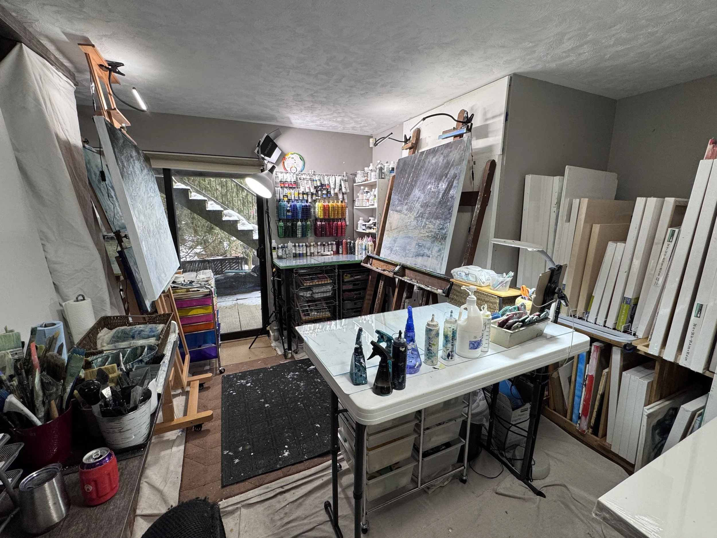 After a career in commercial art, I now paint full-time, focused on expressive abstract landscapes. I create imagined places inspired by changing light, layered textures, and nature’s quiet strength—aiming to evoke stillness, movement, and memory rather than depict real locations.